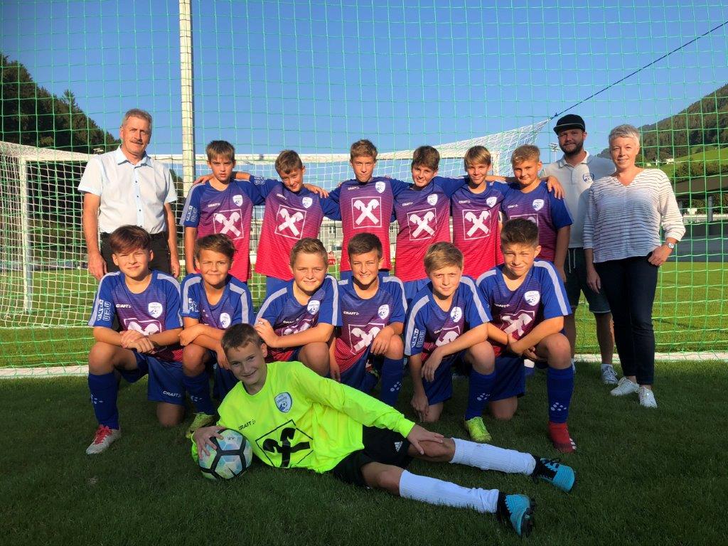 Die U14-Mannschaft bedankt sich recht herzlich bei der Raiffeisenbank Ybbstal (in Vertretung von Bankstellenleiter Martin Mörtelmayer) für das Sponsoring der neuen Dressen.