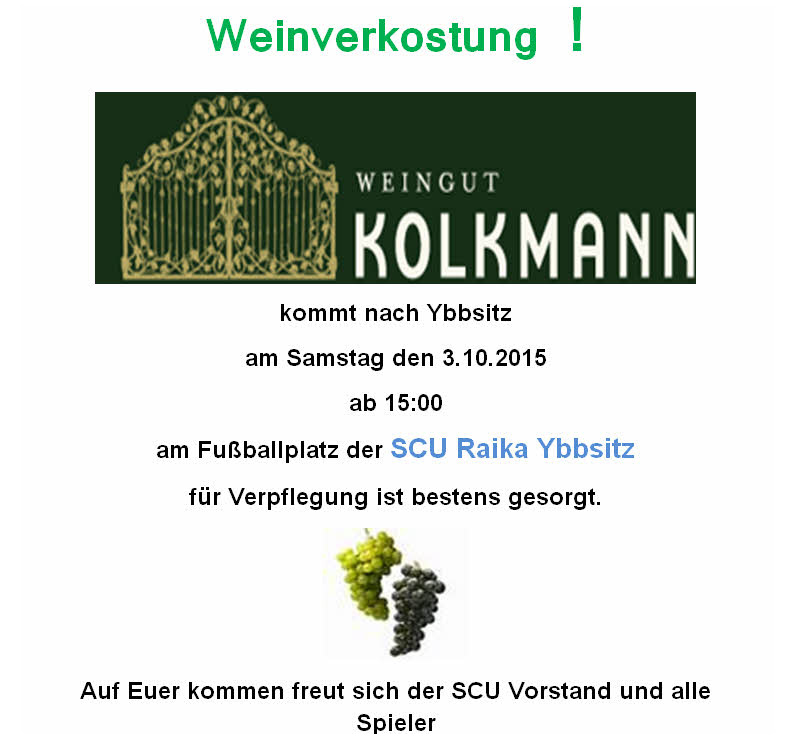 Der SCU-Ybbsitz bedankt sich recht herzlich beim Weingut Kolkmann für das Match-Sponsoring!